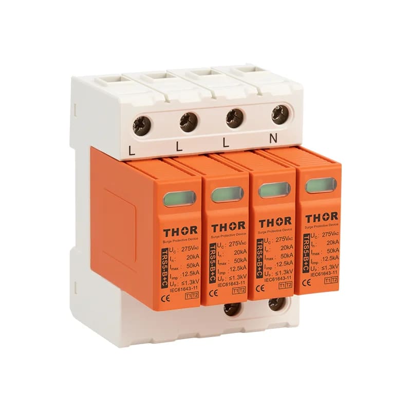 | Type 1 TRS-A50 surge protection device for three phase system | TRS5 type 1+2 surge arrester, 3+1 configuration for 3 phase system |